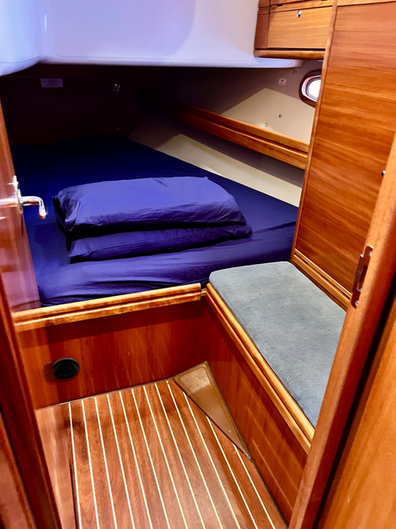 Thoughtfully designed, Precision offers all the creature comforts you need for your adventure — including onboard heating for year-round sailing. With three spacious cabins and two heads, there’s ample room to accommodate up to seven guests with ease.
